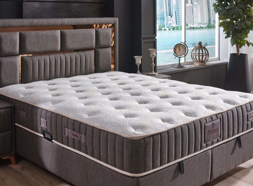 Milano Çift Jakarlı Kumaş Orthopedic Bölgesel Torba Yay Sistemli Yatak+Baza+Baza Başlığı