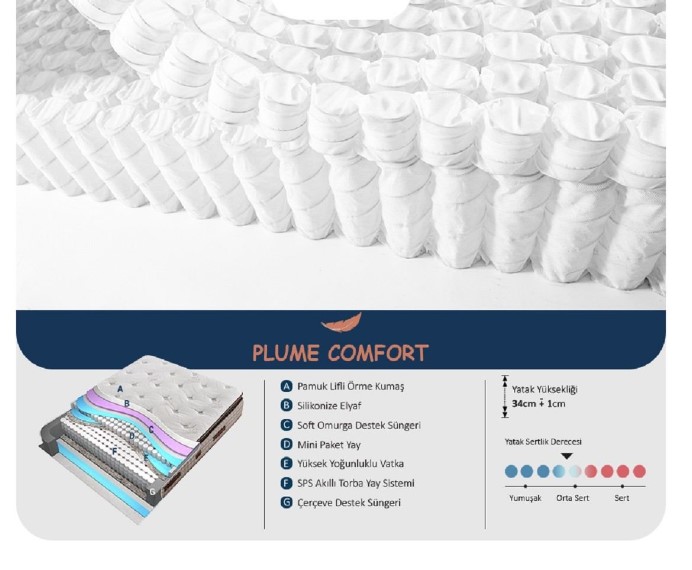 Ana sayfa > Baza ve Yatak Setleri > Çift Kişilik Modeller > Plume Comfort Pedli Organik