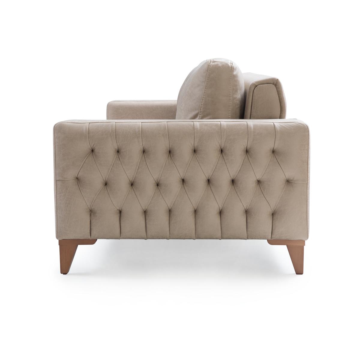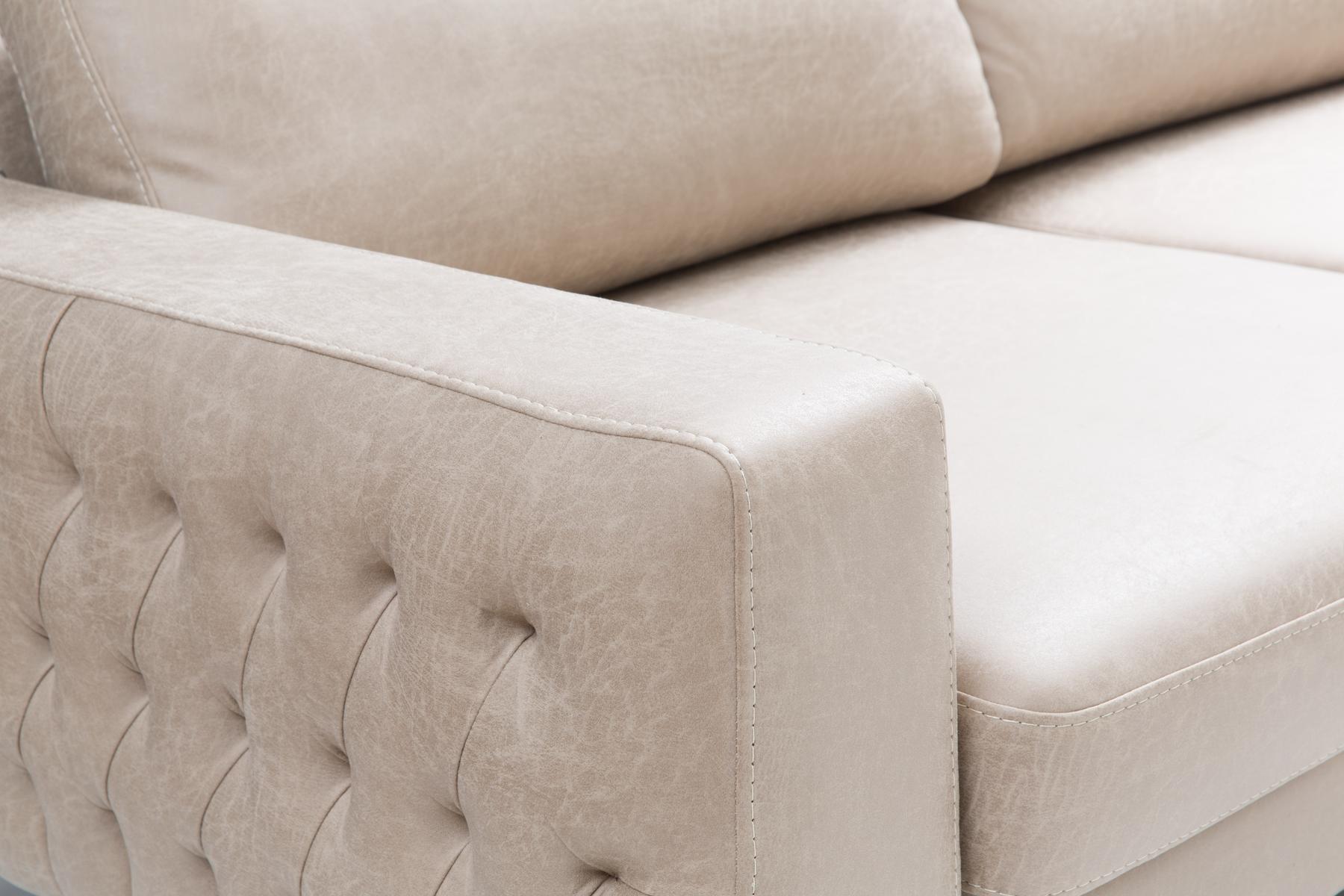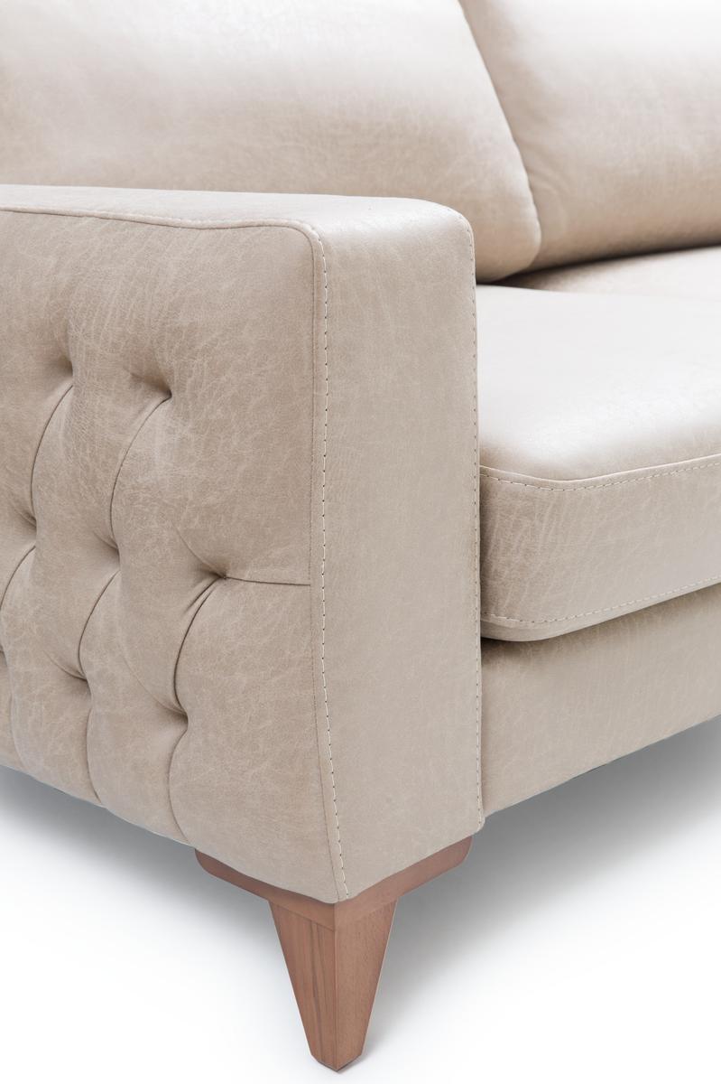 İnegöl mobilyası Asya koltuk takımında manuel sırt döndürmeli mekanizması sayesinde geniş oturum, 35 D 170 sünger ve 350 gr elyaf kullanımı ile ultra rahatlık sunmaktadır. Kollarındaki kapitone detayı ile şık bir görsellik sunmaktadır. Takımda iki adet seyyar başlık mevcut olup konumu değiştirilebilmektedir. Kumaş cinsleri ve Abrasion (MARTINDALE) testi sonucu MONICA >30000, CUBIC ve IMERA >22000, LEATHERSER >5000 olan nano teknolojik kolay temizlenebilir kumaşlar kullanılmaktadır.