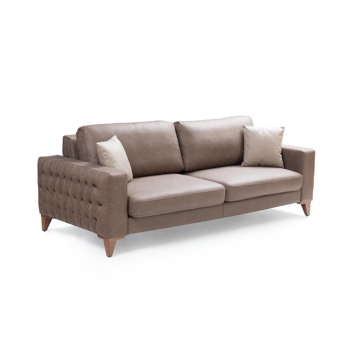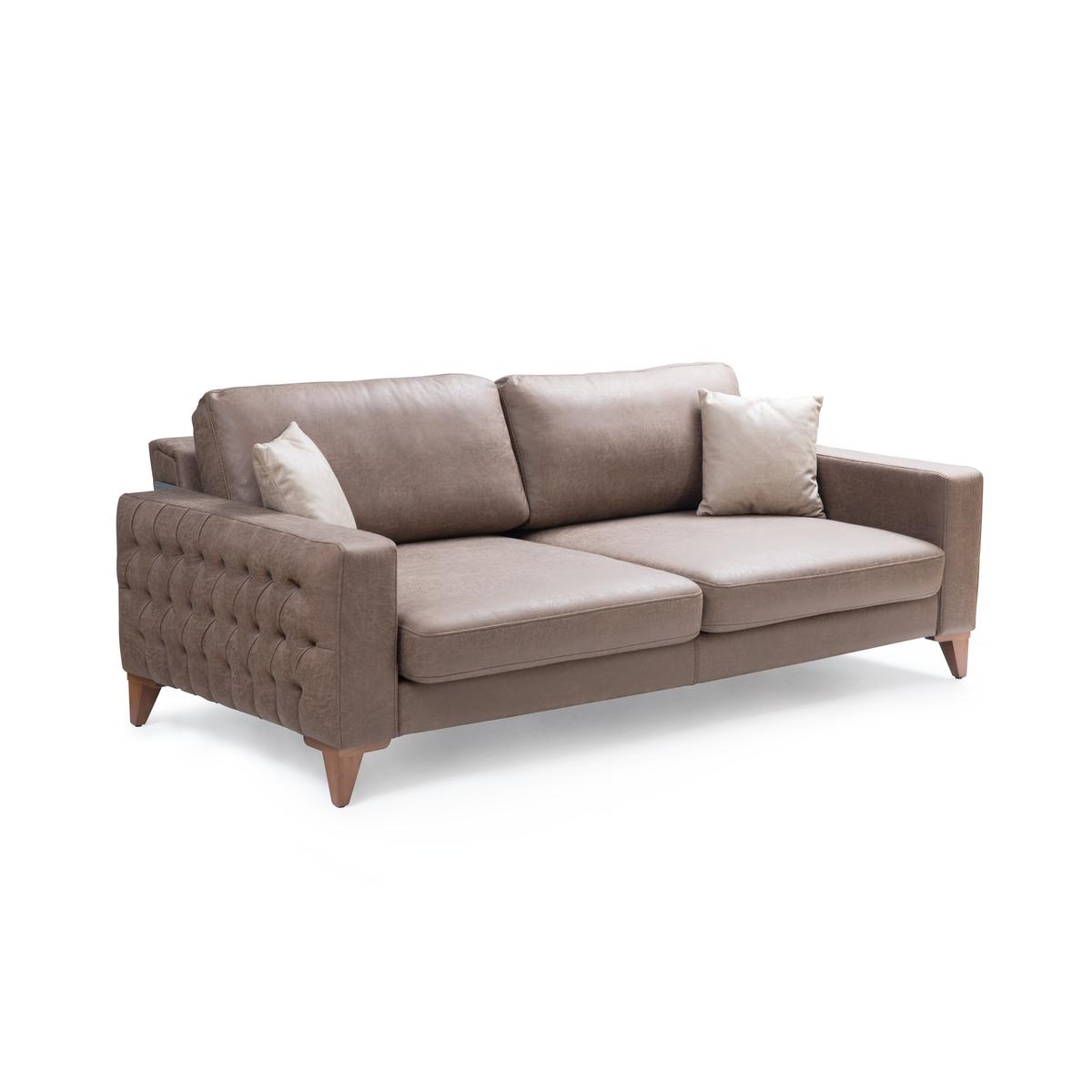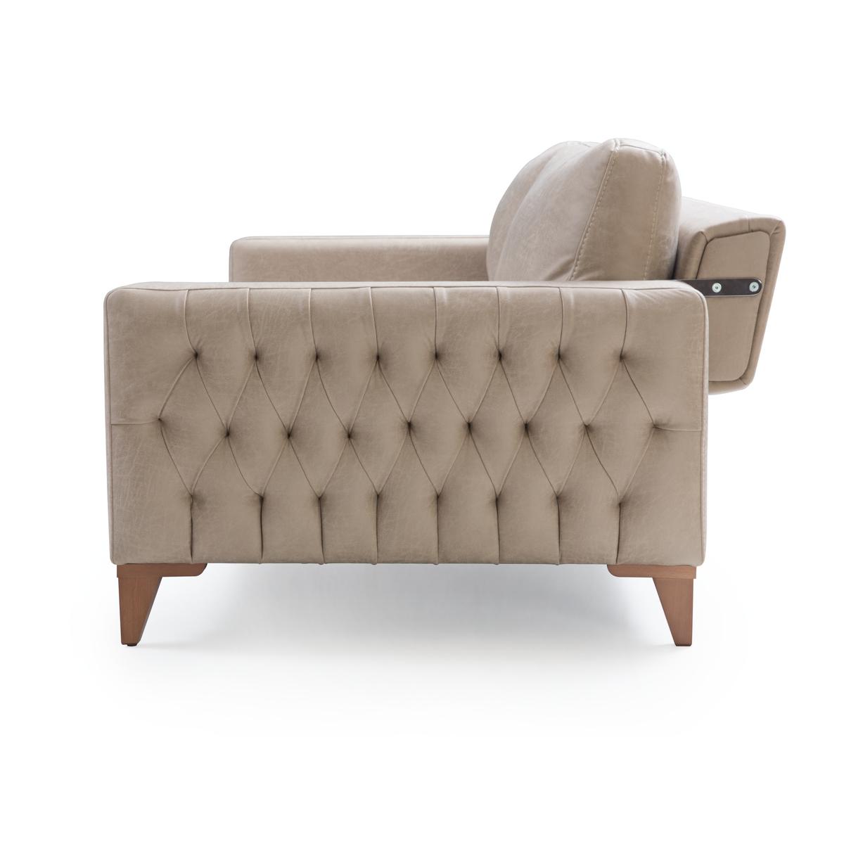 İnegöl mobilyası Asya koltuk takımında manuel sırt döndürmeli mekanizması sayesinde geniş oturum, 35 D 170 sünger ve 350 gr elyaf kullanımı ile ultra rahatlık sunmaktadır. Kollarındaki kapitone detayı ile şık bir görsellik sunmaktadır. Takımda iki adet seyyar başlık mevcut olup konumu değiştirilebilmektedir. Kumaş cinsleri ve Abrasion (MARTINDALE) testi sonucu MONICA >30000, CUBIC ve IMERA >22000, LEATHERSER >5000 olan nano teknolojik kolay temizlenebilir kumaşlar kullanılmaktadır.