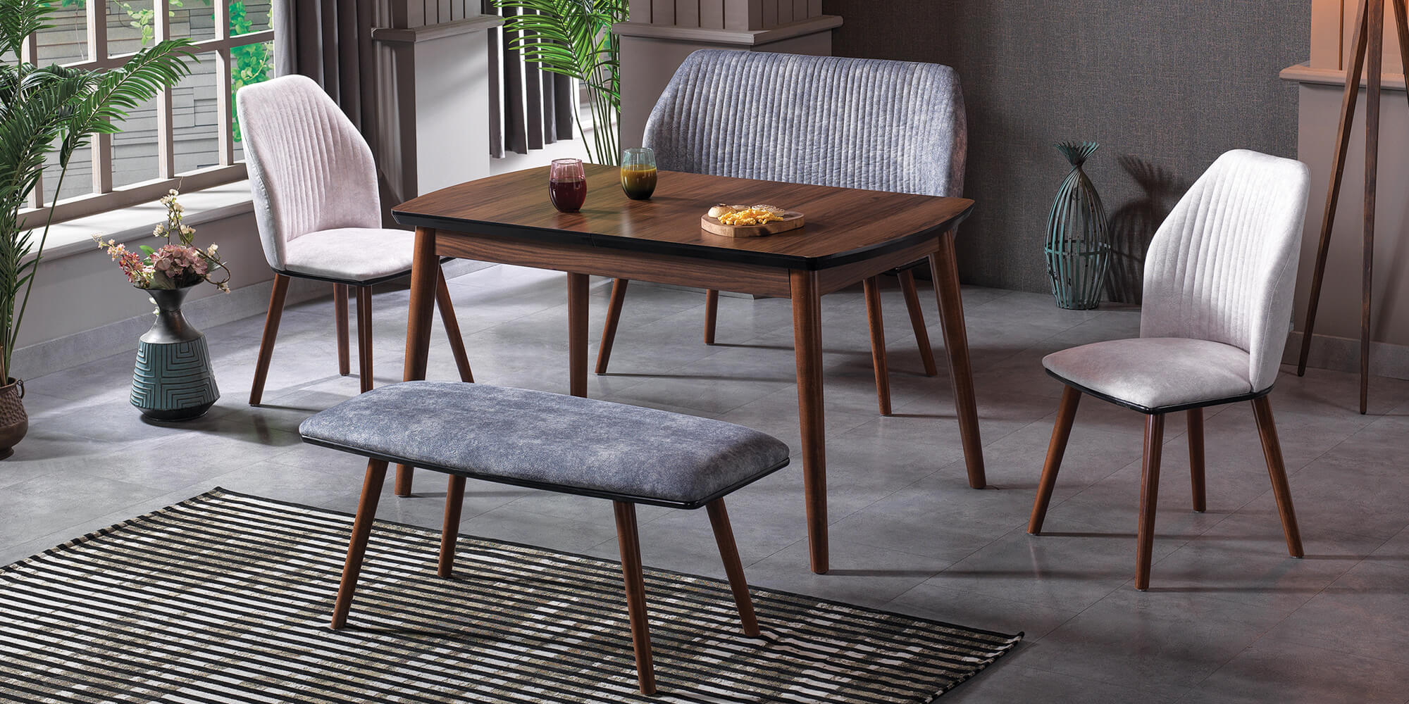 Ana sayfa > Yemek Odaları > Mutfak Masaları > Flora (Koyu Ceviz Banklı Masa)