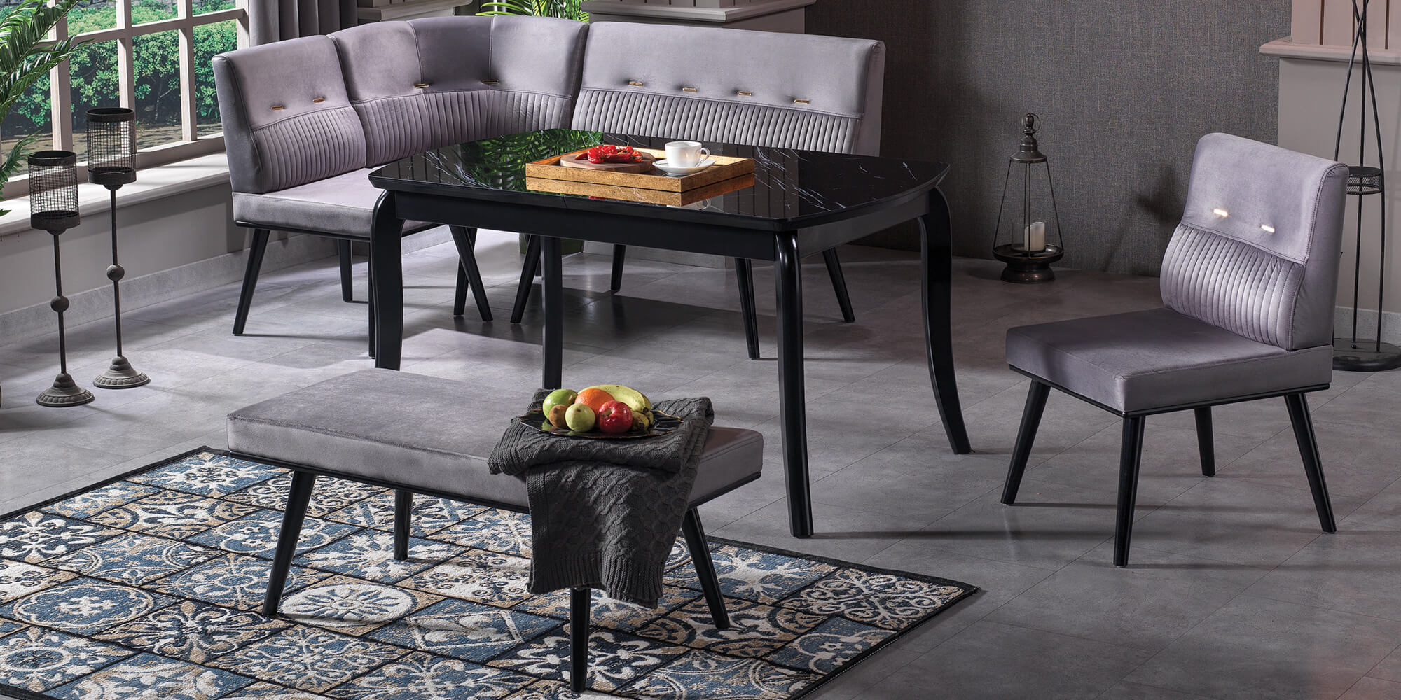 Ana sayfa > Yemek Odaları > Mutfak Masaları > Loca (Siyah Mermer Köşe Banklı Masa)