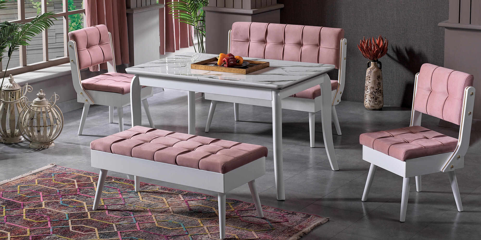 Ana sayfa > Yemek Odaları > Mutfak Masaları > Milano (Beyaz Mermer Banklı Masa)