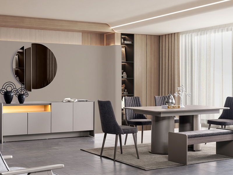 Luna Yemek Odası, yaşam alanlarınıza şık bir görünüm kazandırmaya hazır. Takım içeriği konsol,masa,6 sandalye oluşmaktadır. Doğadan ilham alınarak hazırlanan renkleri sayesinde estetik bir tasarım anlayışına sahip.
