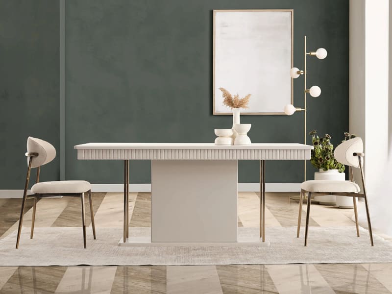 GRANDE yemek odası takımı salonunuzda hayalini kurduğunuz şık ve zarif tarzı yaratmanızı sağlıyor. Evinizde yeni tarzlara yer açın.