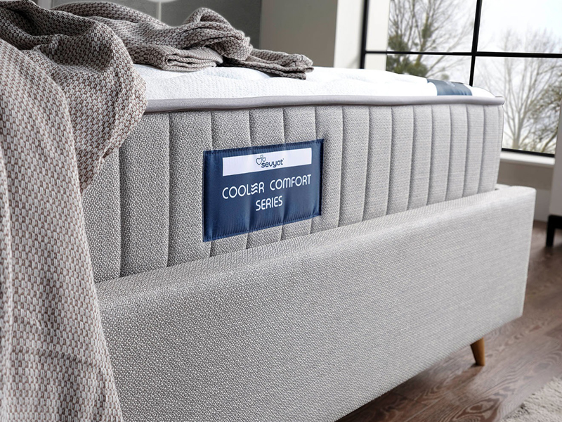 Cooler teknolojisiyle ürettiğimiz Cooler Comfort Yatak, yüksek termal iletkenliği sayesinde vücut ısınızınızı hızla dengeler ve uykuya dalma sürenizi azaltır. Rahat bir uyku için gerekli optimum vücut ısısına ulaşmanızı sağlayan teknoloji sayesinde daha derin bir uyku deneyimi sizleri bekliyor. No-Spring teknoloji ile tasarlanan bu yatak içeriğindeki soft katman ve uzay teknolojisiyle üretilmiş visco sünger sayesinde vücut hareketlerinize hızlı uyum sağlayarak rahatlamanıza ve yeniden enerjinizi kazanarak güne dinamik uyanmanıza yardımcı olur. Cooler Comfort yatağın mevsimsel kullanım özelliği sayesinde cooler özellikli yüzeyi yaz aylarında serin bir uyku sağlarken diğer yüzeyi kış aylarında vücut ısınızı optimum seviyede tutarak rahat bir uyku deneyimi sağlar.