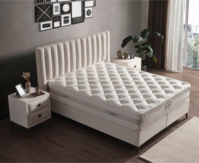 Güçlü Bonel Yay Sistemi kullanılarak üretilen Eclipse Yatak içeriğinde bulunan ekstra destek katmanları sayesinde omurganıza gerekli desteği sağlayarak uyku konforunuzu artırır. Özellikle orta sert zeminlerde uyumaktan hoşlanan kişilere hitap eden Eclipse Yatak, yüksek yoğunluklu yapısıyla eklem ağrısı gibi rahatsızlıkların giderilmesine yardımcı olur. Yüzeyinde kullanılan kumaş özel Kaşmir içerikli yumuşak dokusu sayesinde cildinize eşsiz bir his verir. Her mevsim kullanıma uygun olan bu kumaşlar içerdiği doğal lif yapısı sayesinde kışın sıcak tutarken yazın da rahat ve serin bir kullanım sağlar. Çift yönlü kullanım özelliği sayesinde uzun yıllar ilk gün ki konforunu korur.