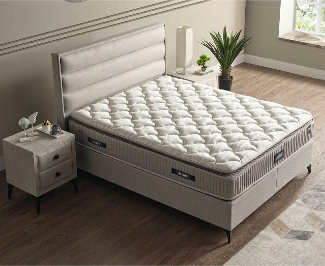 Bonel Yay Sistemiyle üretilen Moon Yatak, yüksek yoğunluklu yapısı sayesinde bel ve omurlara gereken desteği sağlayarak uykuda dinlenmenizi sağlar. Orta-sert Moon Yataklar bel ağrısı gibi rahatsızlıkları hafifletmeye yardımcı olur. Moon Yatakta kullanılan Karbon içerikli kumaş anti-stres özelliğine sahiptir. Bu özel kumaş Anti Stres ve Anti-Statik etkisiyle negatif enerjinin vücuttan atılmasını sağlayarak uykudan dinlenmiş bir şekilde uyanmanıza ve güne pozitif başlamanıza yardımcı olur. Üzerindeki uyku pedi içerdiği farklı yoğunluktaki katmanlar sayesinde vücudunuzu yumuşakça karşılayarak rahat bir uyku ortamı yaratır. Moon Yataklar tek yönlü kullanıma uygundur.