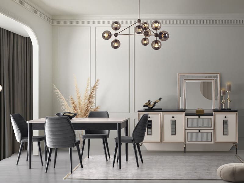 Riva Yemek Odası Takımı, zamansız tasarımı ve çizgisel detaylarıyla evinize şık bir hava katıyor. Estetik detaylarıyla da dikkat çekiyor. Siz de Riva Yemek Odası Takımı’yla yemek deneyiminizi bir üst seviyeye taşıyabilirsiniz.