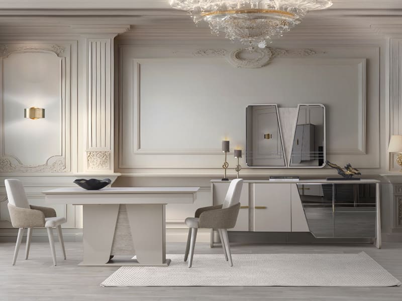 Madrid Yemek Odası Takımı, modern ve işlevsel tasarımıyla evinizde yemek zamanlarını daha keyifli hale getiriyor. Estetik detaylarıyla da dikkat çekiyor.