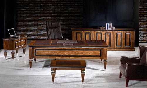 "Klasik avangart modeli ofisinde klasik bir dokunuş isteyen yöneticilerin tercihi. Kairos Vip Makam Takımı’nın krom parçalı klasik çizgideki ayakları ve masa yüzeyinde kullanılan deri detaylar sizin de ofis stilinize aura katacak."