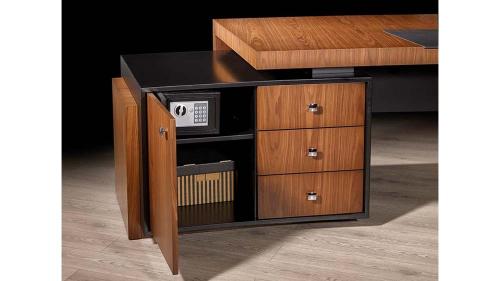 Yenilenen stiliyle Okkos Vip Makam Takımı şimdi daha da şık. Para kasası ve çöp kovasının standart olarak bulunduğu Okkos Vip Makam Takımı’nda kesonlar büyük tutularak çekmece kapasiteleri maksimuma çıkarılmış. Bağımsız üç parçaya ayrılabilen sehpası ise son derece fonksiyonel.
