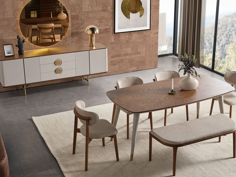 Çağdaş tasarımdan ilham alan Viola Yemek Odası özel ayrıntılarıyla eşsiz konfor sunuyor.