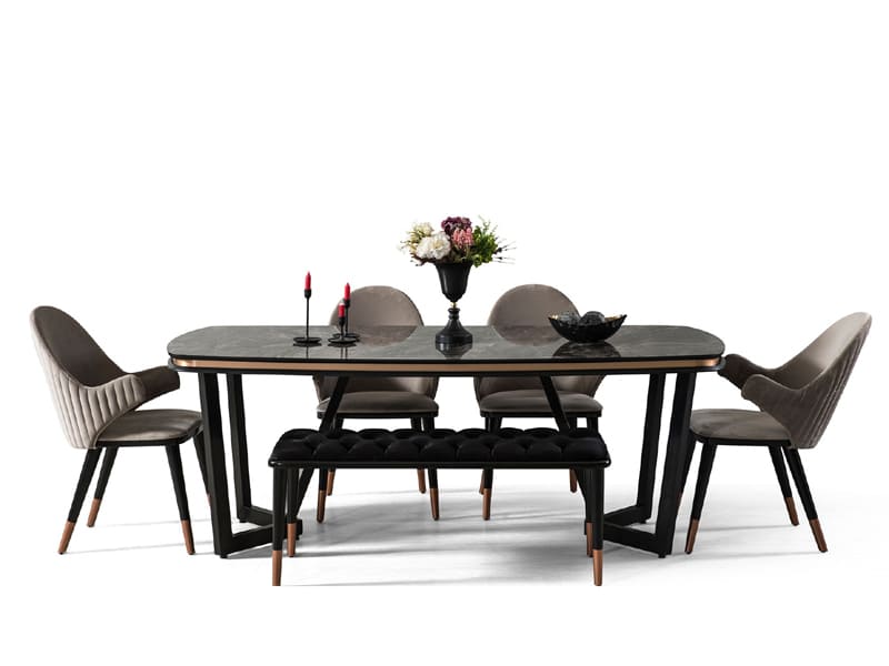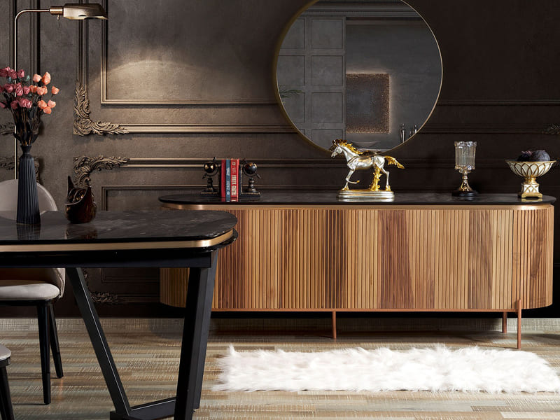 Asil, çekici ve zamansız... Sakin ve seçkin detaylarıyla klasik bir şıklığı yansıtan Tesla Walnut Bronz Yemek Odası, modern tasarım anlayışına özgün ve şık bir yorum getiriyor.