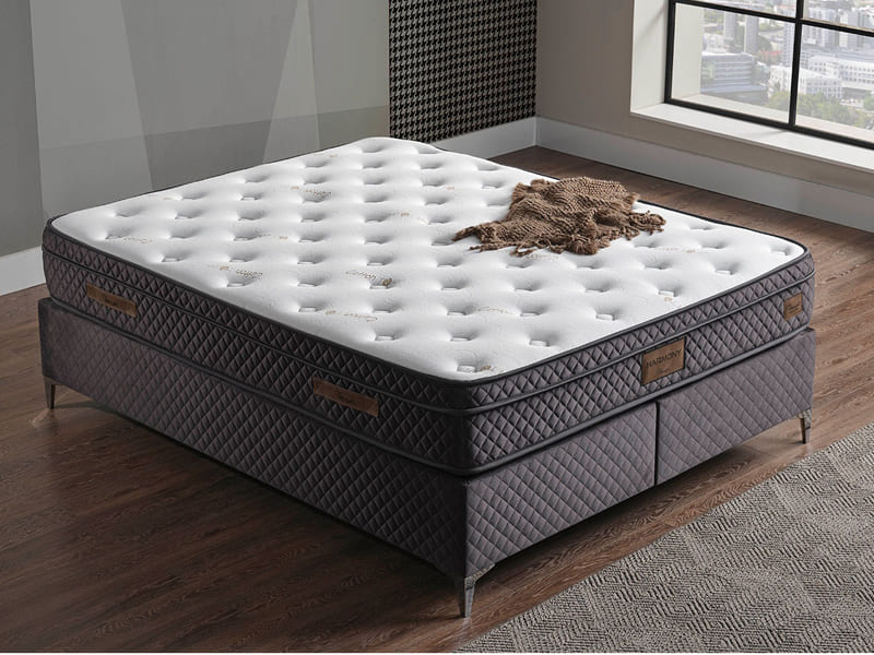 Kullanılan Güçlü Bonel Yay Sistemini destekleyen yüksek yoğunlukta ki ortopedik katmanlar basıncı eşit bir şekilde dağıtır ve konforlu bir uyku ortamı sağlar.