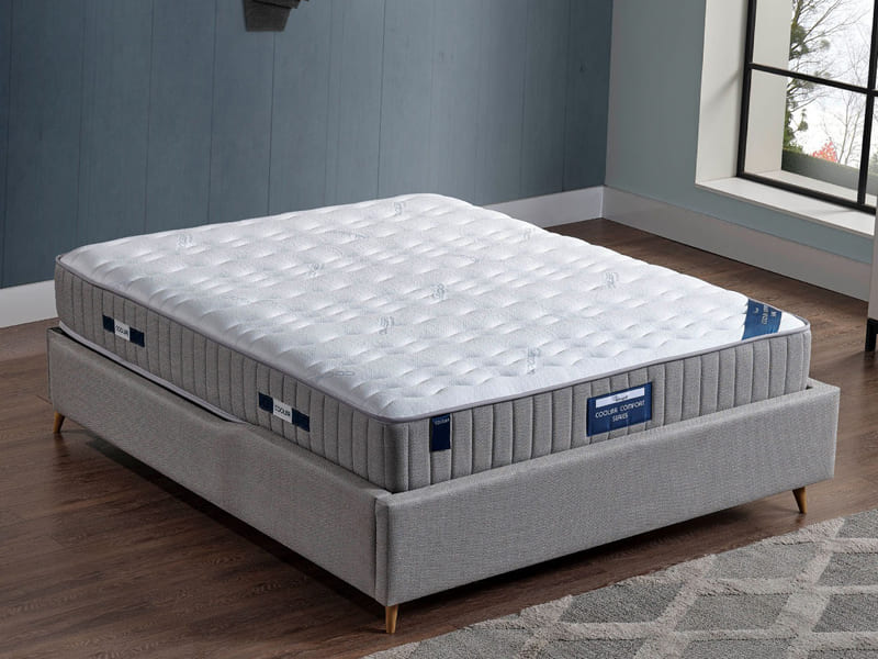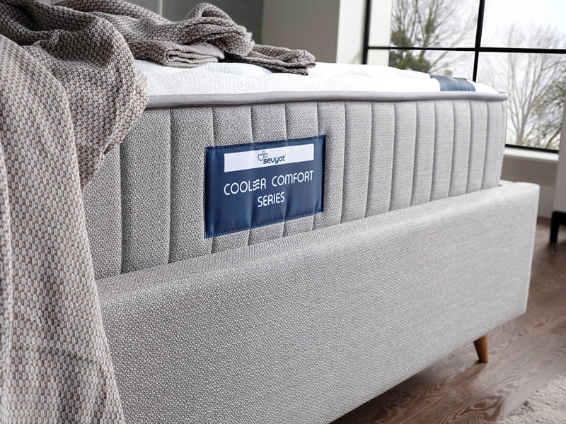 Cooler teknolojisiyle ürettiğimiz Cooler Comfort Yatak, yüksek termal iletkenliği sayesinde vücut ısınızınızı hızla dengeler ve uykuya dalma sürenizi azaltır. Rahat bir uyku için gerekli optimum vücut ısısına ulaşmanızı sağlayan teknoloji sayesinde daha derin bir uyku deneyimi sizleri bekliyor. No-Spring teknoloji ile tasarlanan bu yatak içeriğindeki soft katman ve uzay teknolojisiyle üretilmiş visco sünger sayesinde vücut hareketlerinize hızlı uyum sağlayarak rahatlamanıza ve yeniden enerjinizi kazanarak güne dinamik uyanmanıza yardımcı olur. Cooler Comfort yatağın mevsimsel kullanım özelliği sayesinde cooler özellikli yüzeyi yaz aylarında serin bir uyku sağlarken diğer yüzeyi kış aylarında vücut ısınızı optimum seviyede tutarak rahat bir uyku deneyimi sağlar