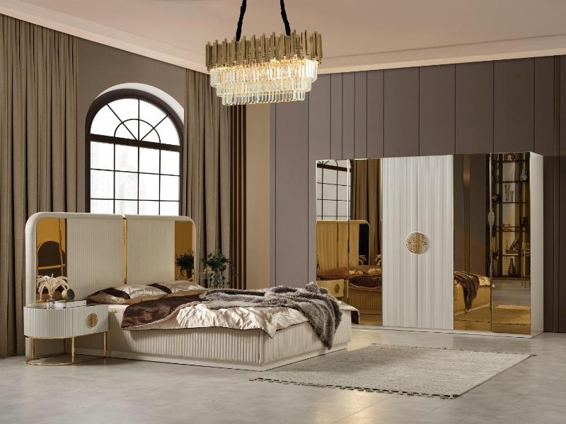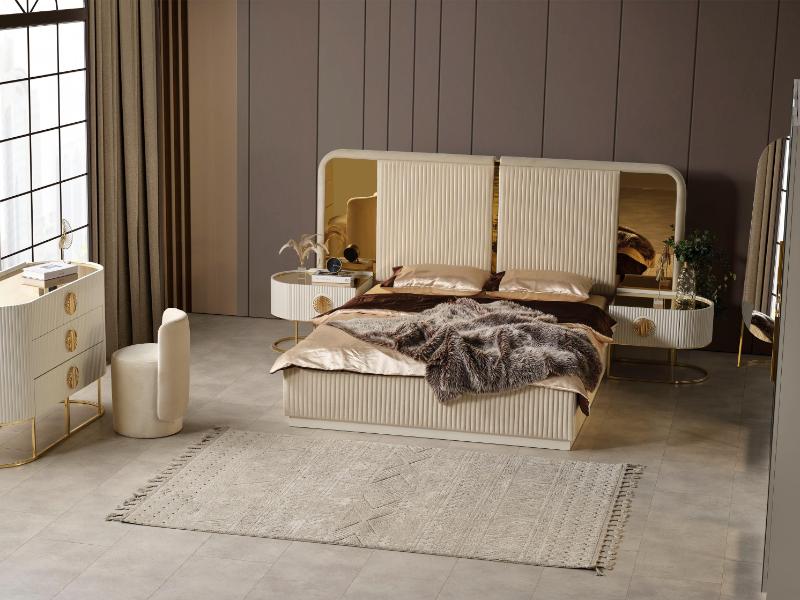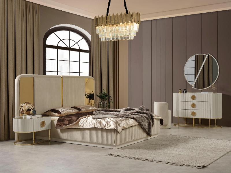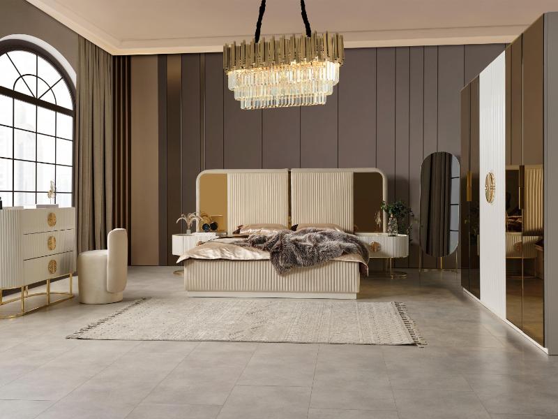 Ana sayfa > Yatak Odaları > Modern Takımlar > Gucci Capucino siyah cam gold metal Yatak Odası Takımı